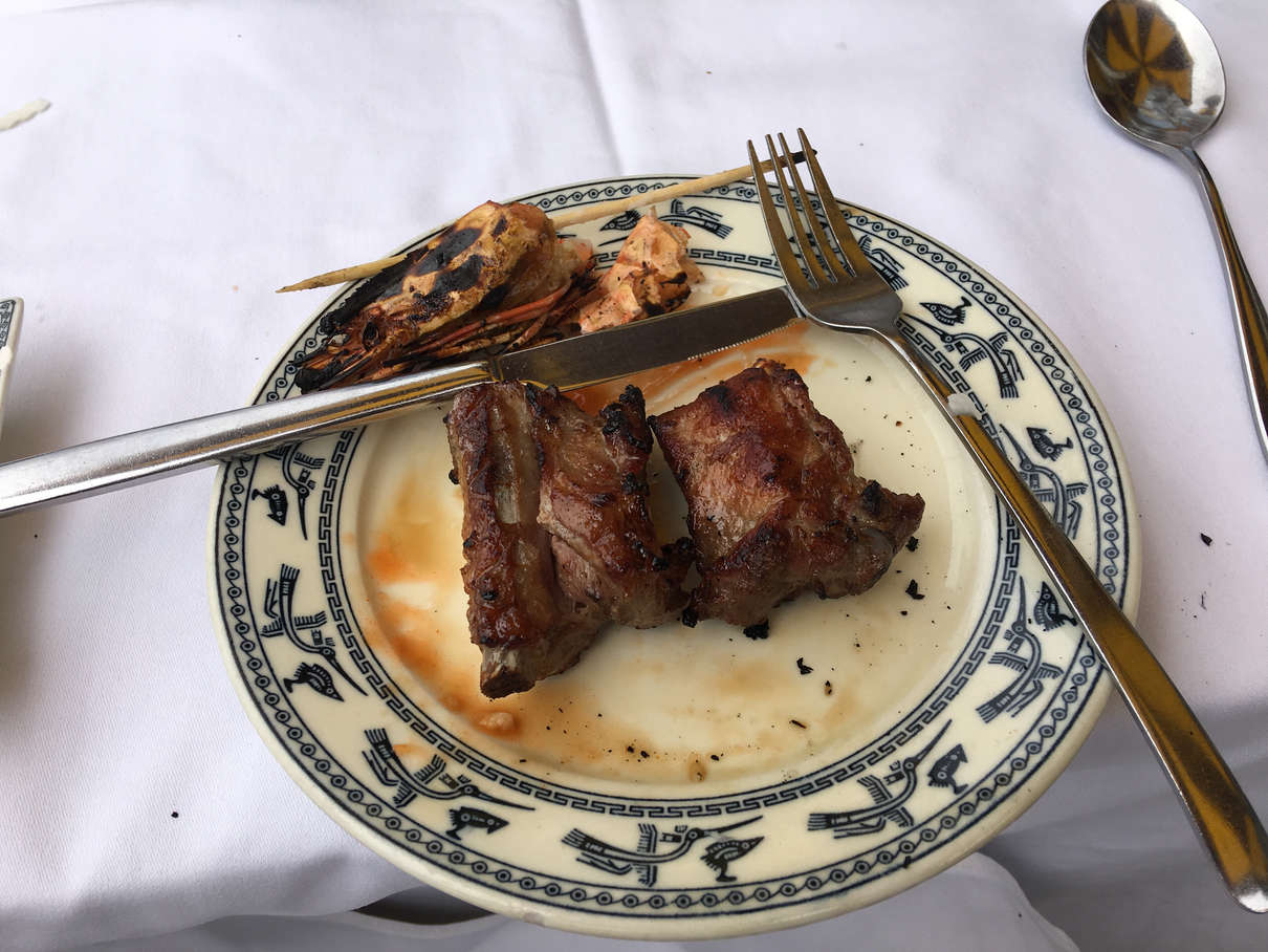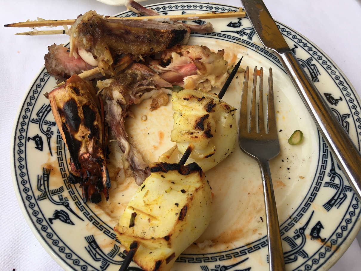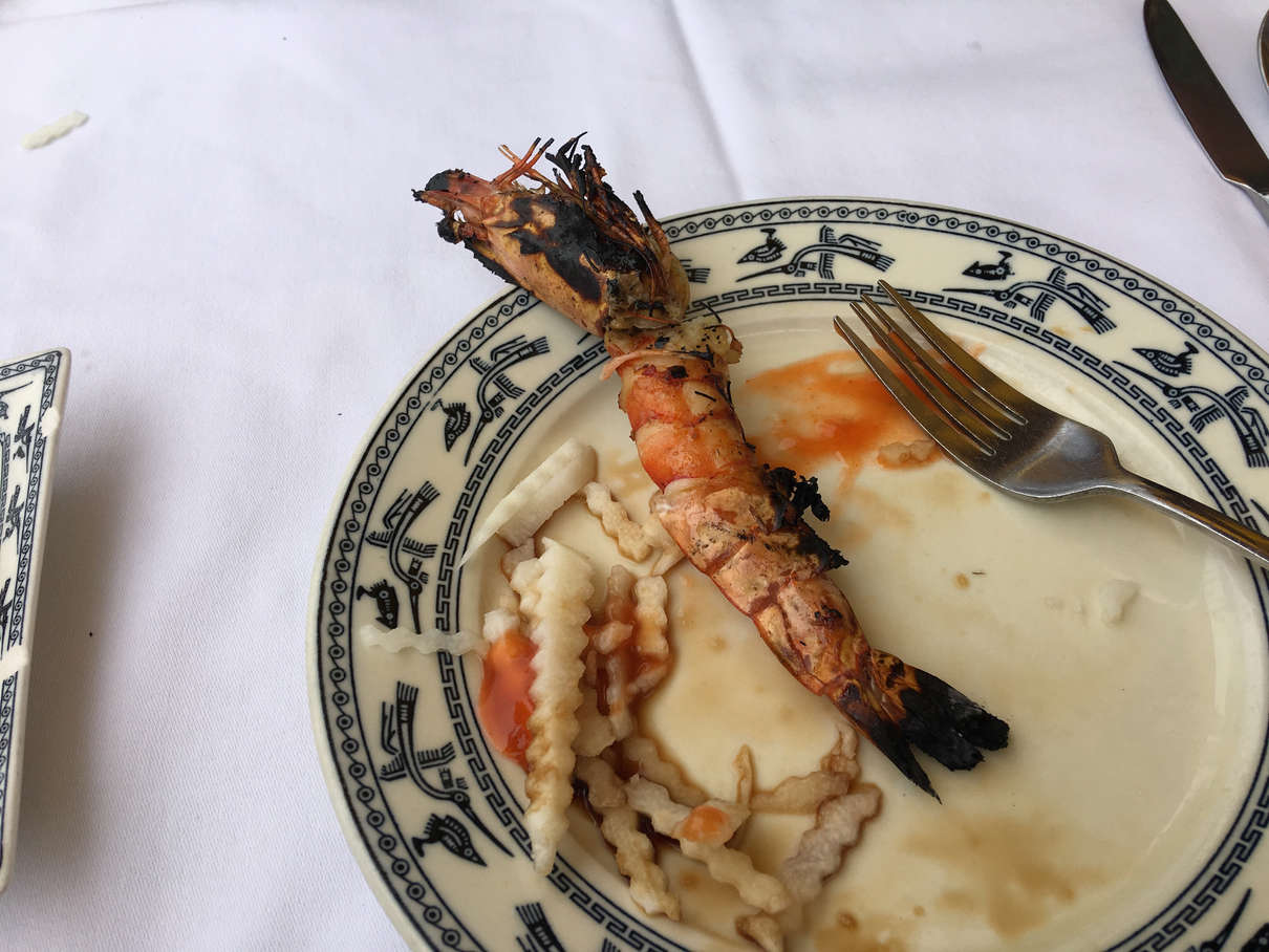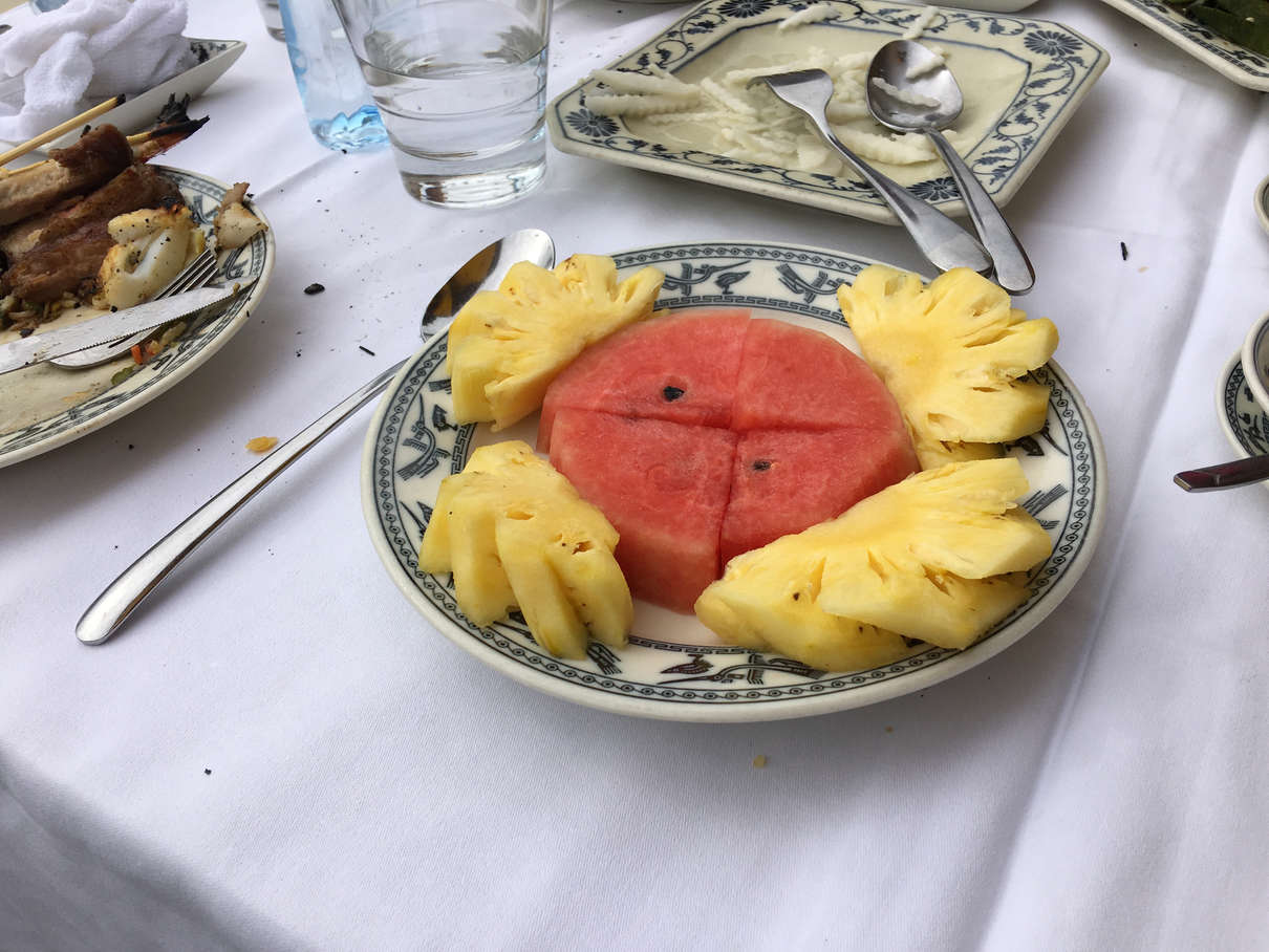 All of this adventuring works up an appetite and the cruise folks had a barbecue lunch waiting for us on an adjacent beach from the cave that the tour company made (beaches take a year to make apparently). Lots of tasty meats, including shrimp, pork, chicken, mackerel, squid, along with jicama, fried rice, and most importantly, pineapple! (Food was placed right into our plates, hence the mess)