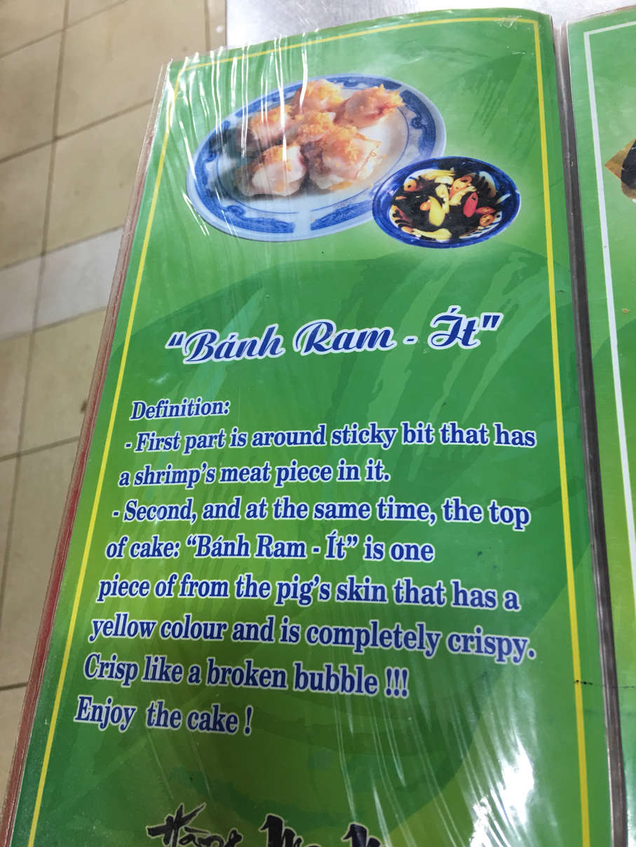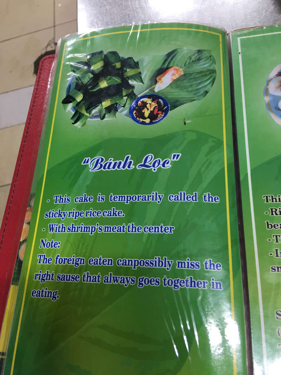 A snack sounded good, so we went to Me Me Restaurant to have some of a local dish, seen in their descriptive menu.