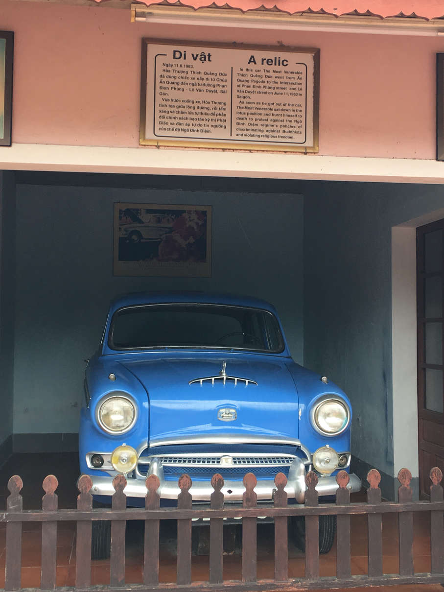 This was the car of Thich Quang Duc, a Buddhist who set himself on fire in 1963 to protest the policies levied against Buddhists at the time.