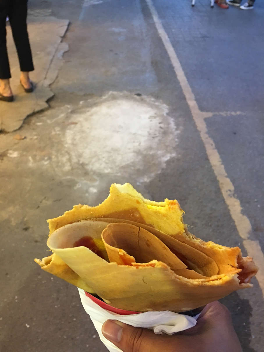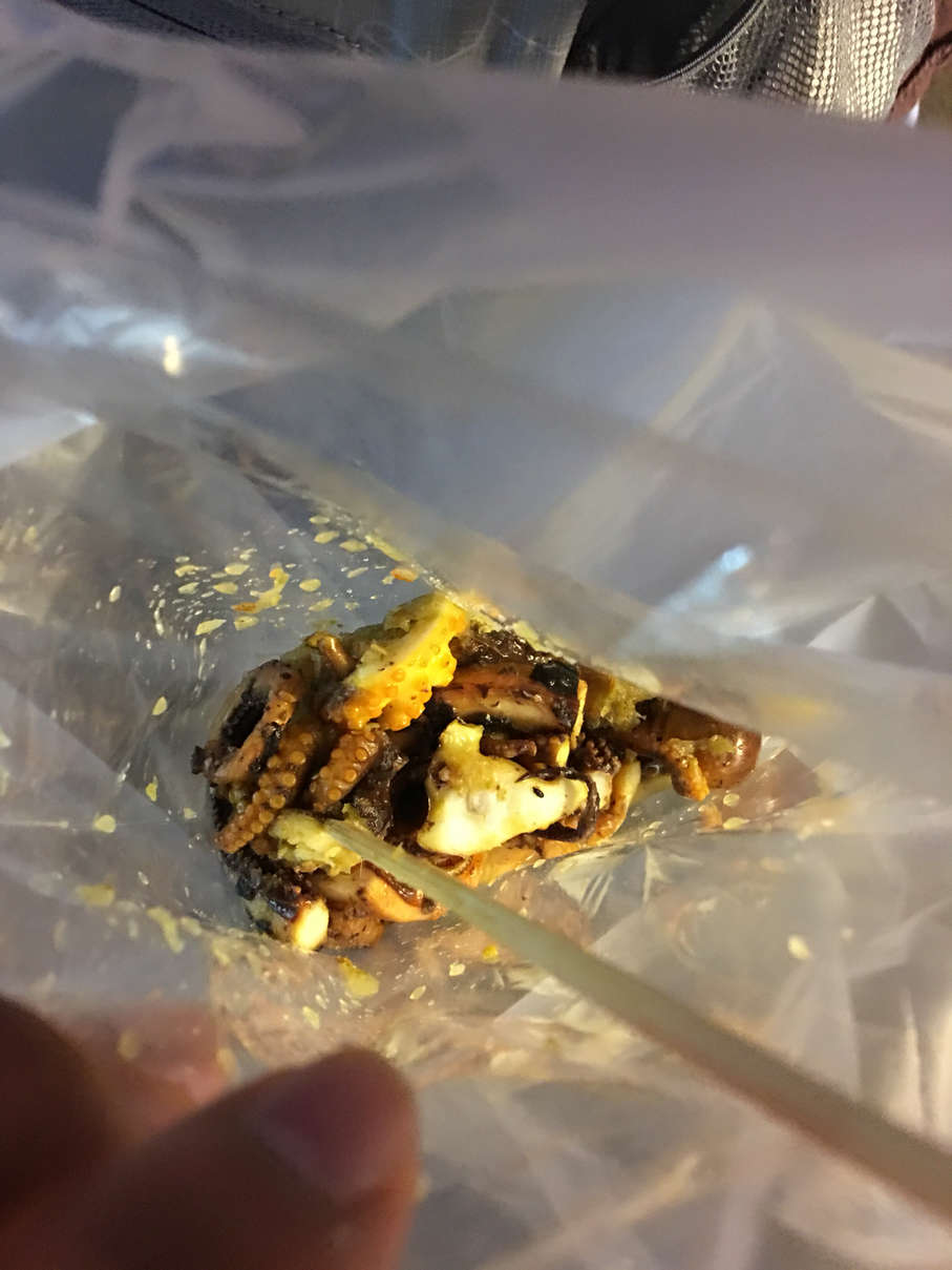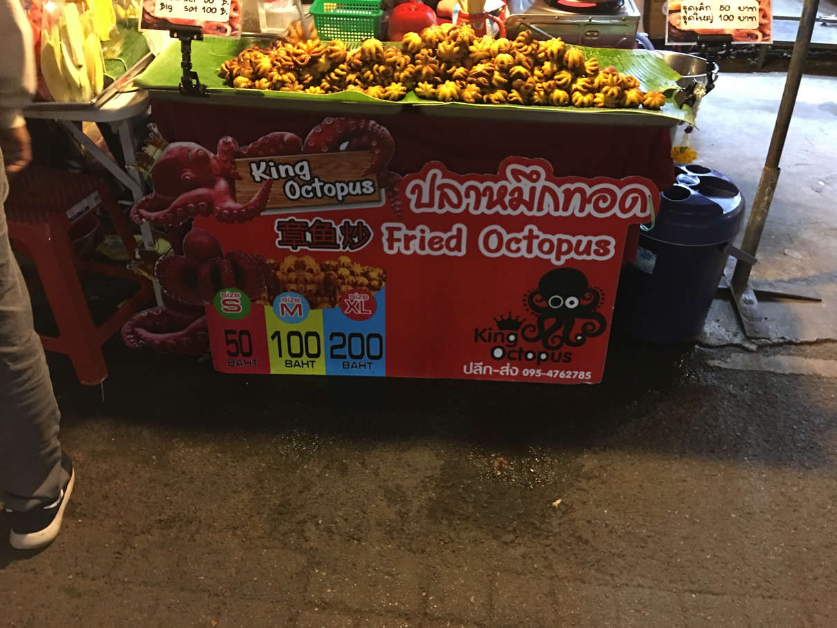 Plenty of food to be had, we had a crepe with shredded pork and a fresh egg, octopus with spicy sauce, and mango sticky rice.