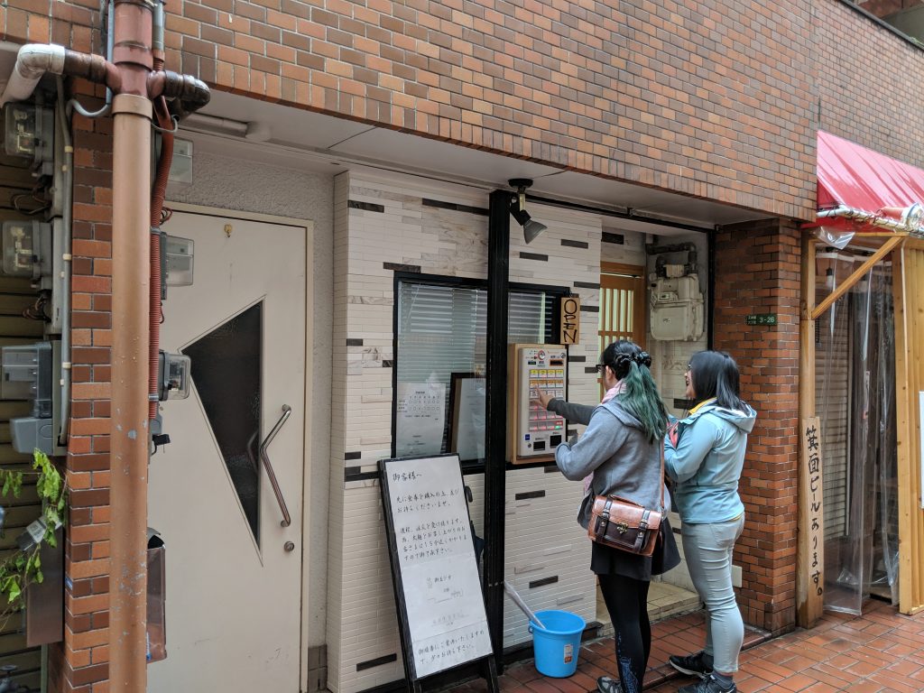 As awesome as walking the old streets of Osaka was, there was no food to be had, so we hit the real streets to our lunch destination, Gunjo Ramen. This place proved to be a bit tricky to find, as the store had no obvious sign (that we could read, at least). As with any good ramen place in San Francisco, we found this by the line that had formed outside.