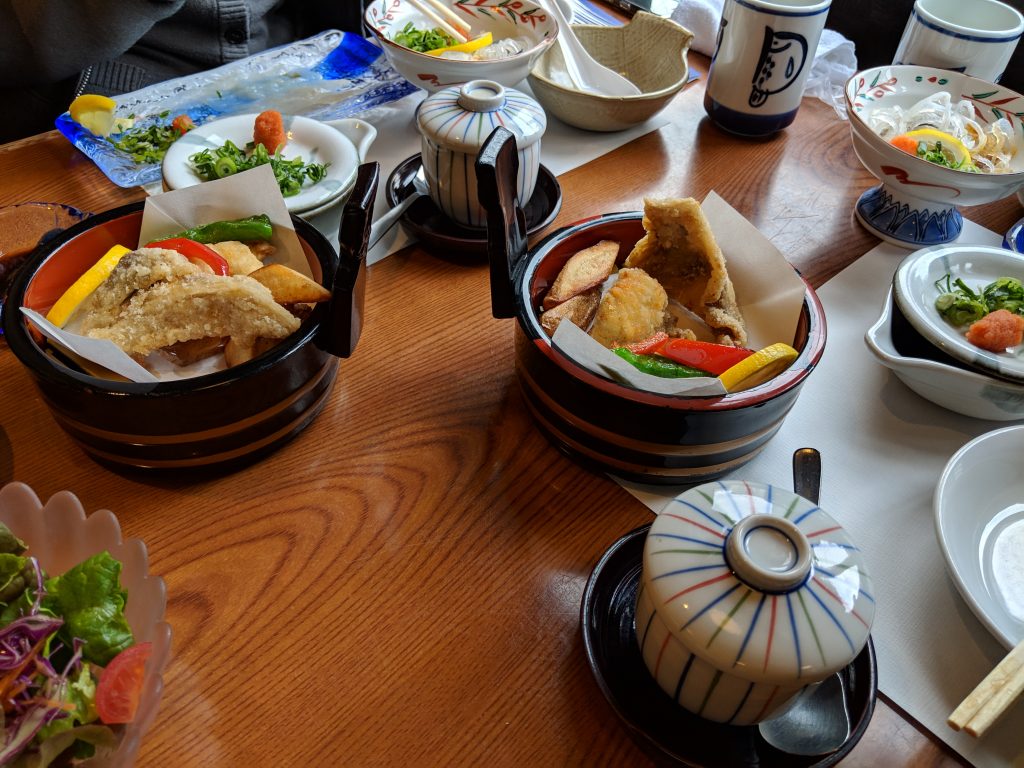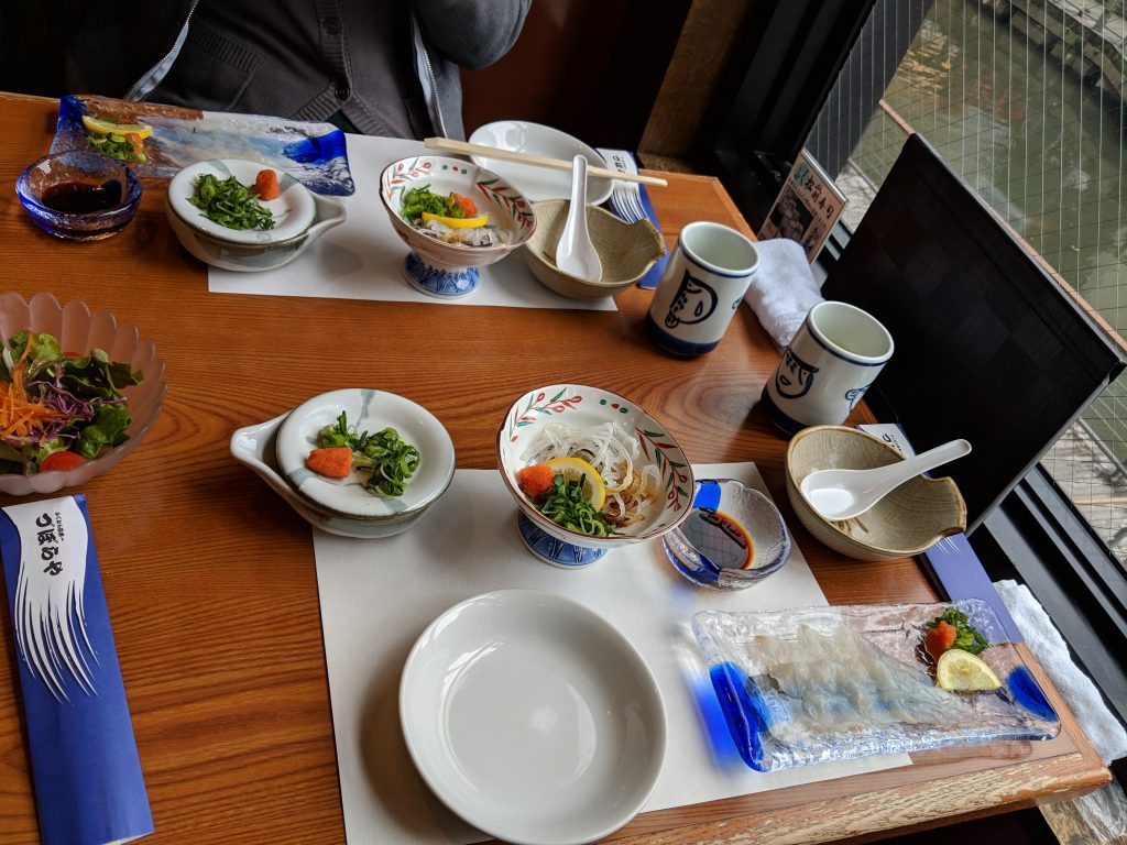 Before departing for Hiroshima, we had a tasty breakfast in Dotonbori at Zuboraya. This is a chain that specializes in fugu. With this being my first time having fugu, I was quite excited for the meal. Turns out it’s quite tasty, especially with ponzu sauce.