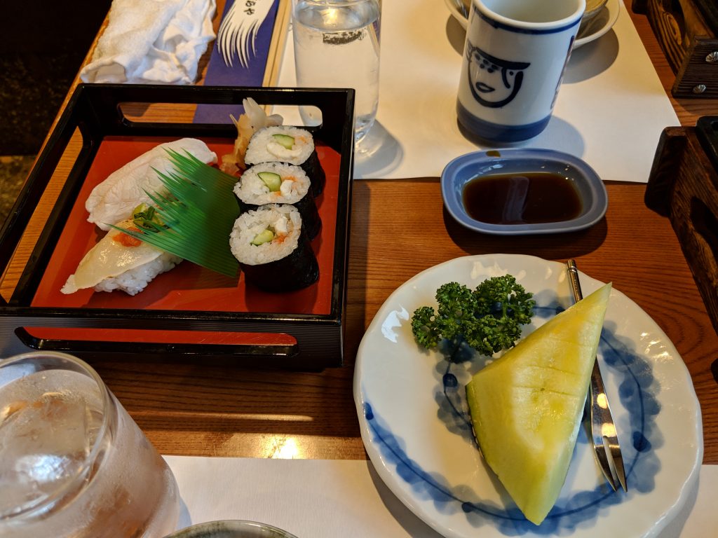 Fugu sushi and honeydew