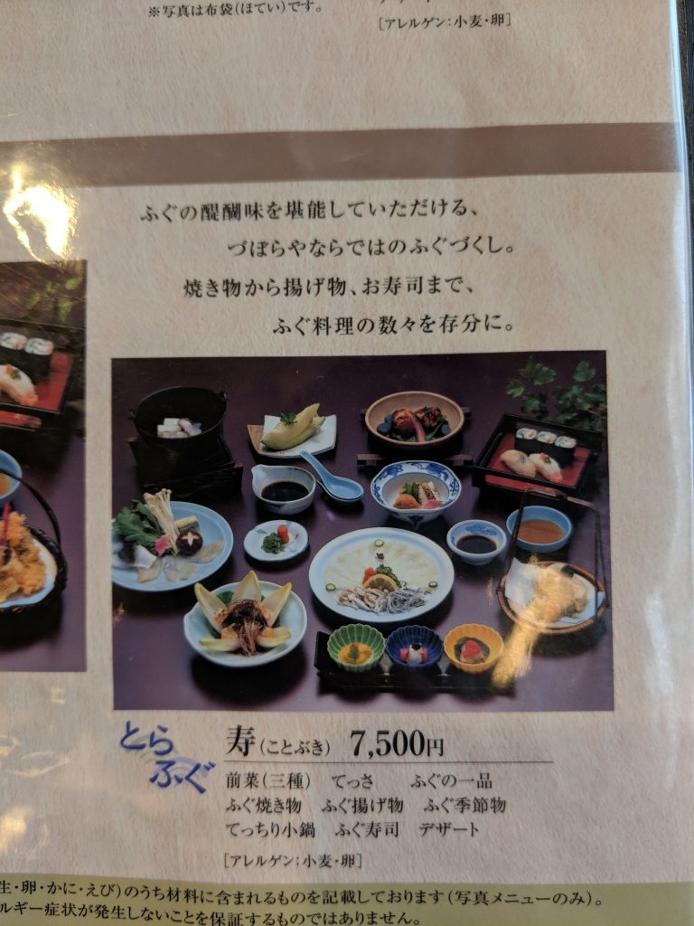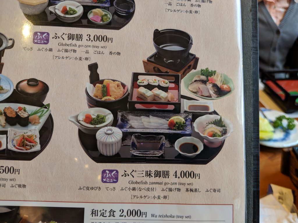 Friends’ fugu set in menu